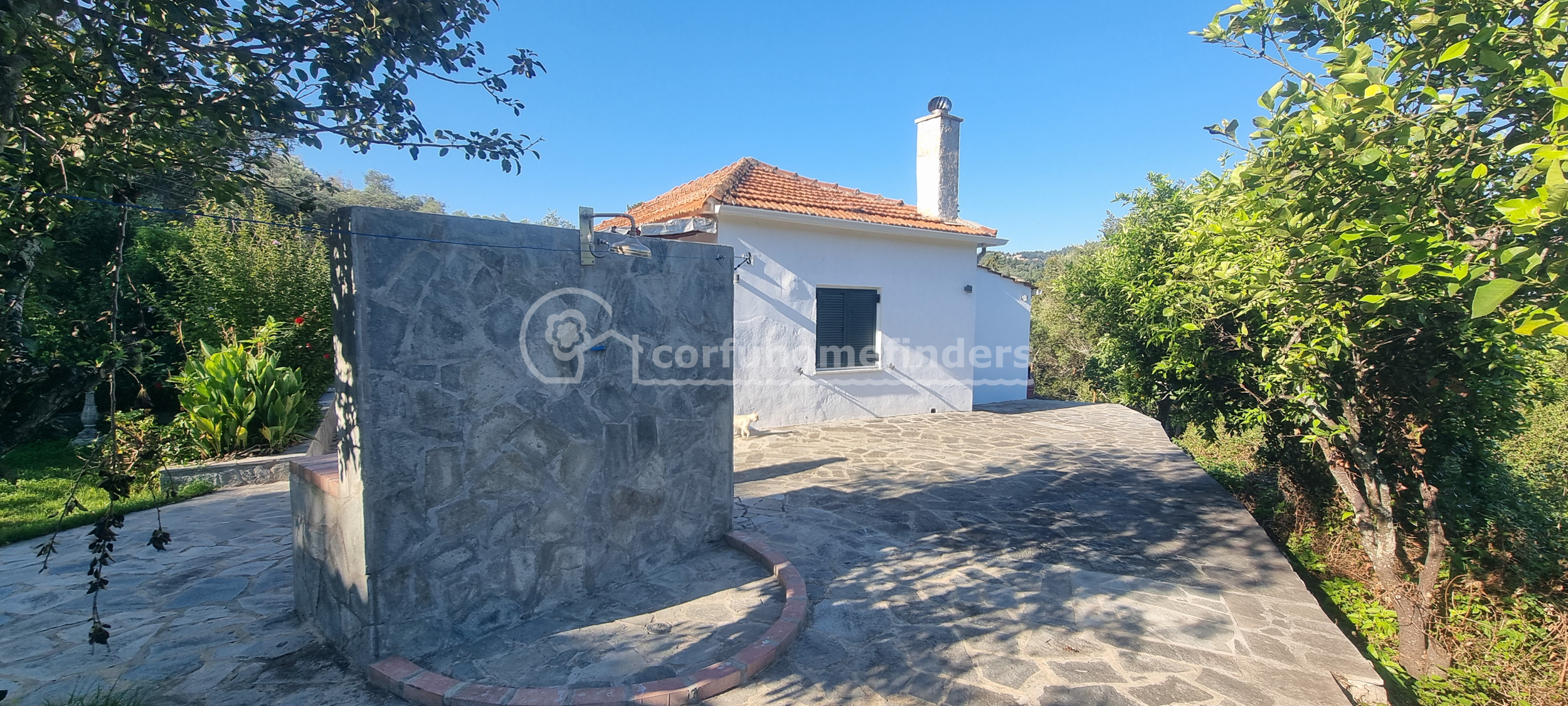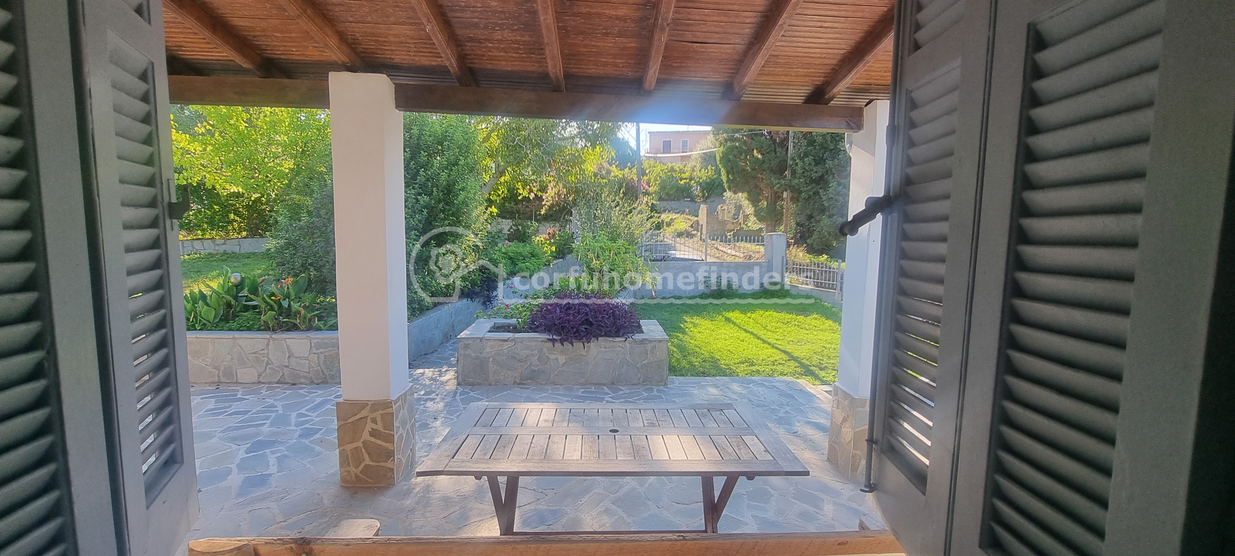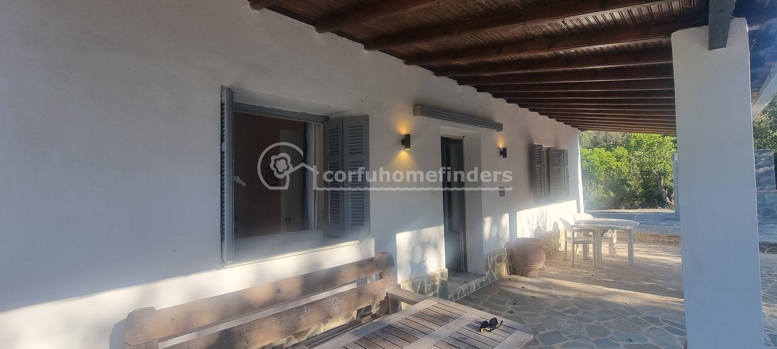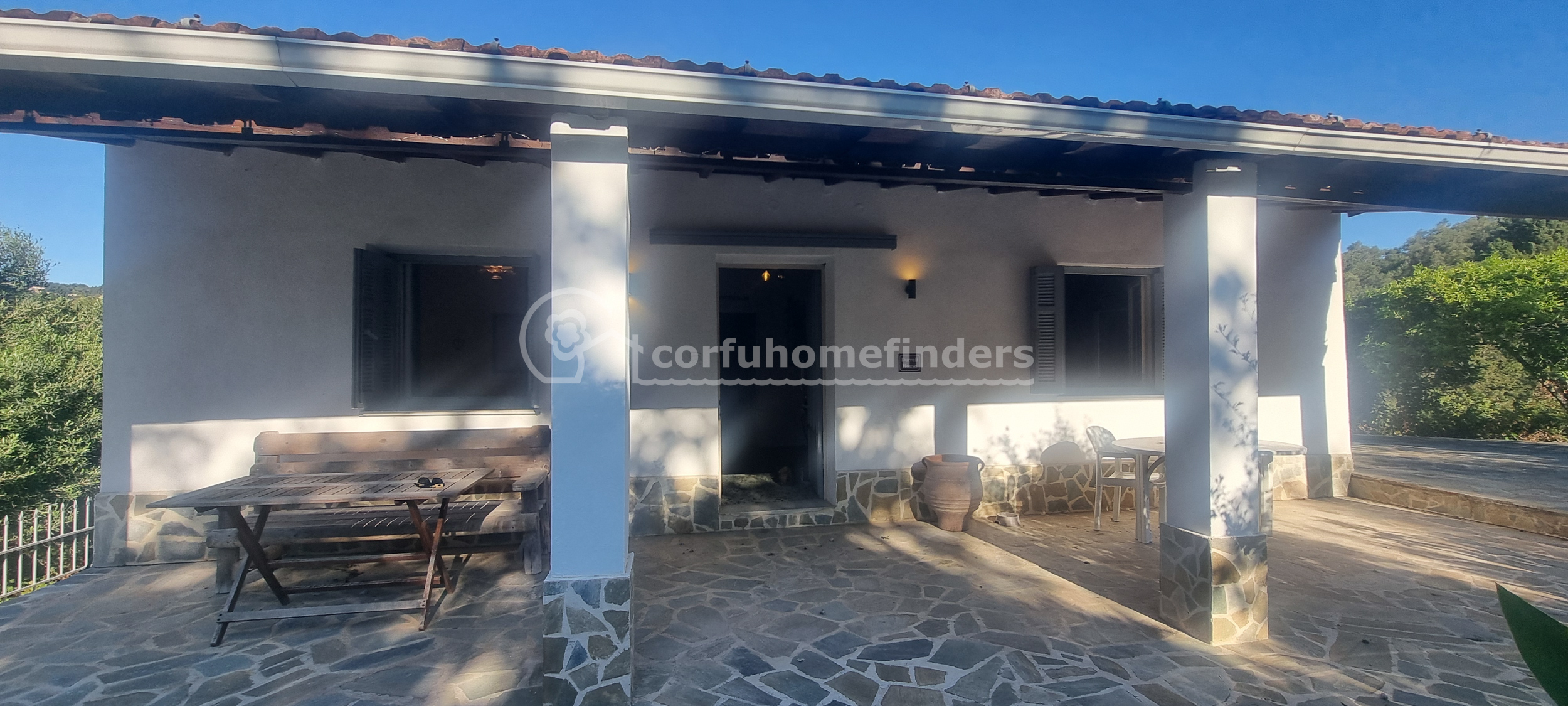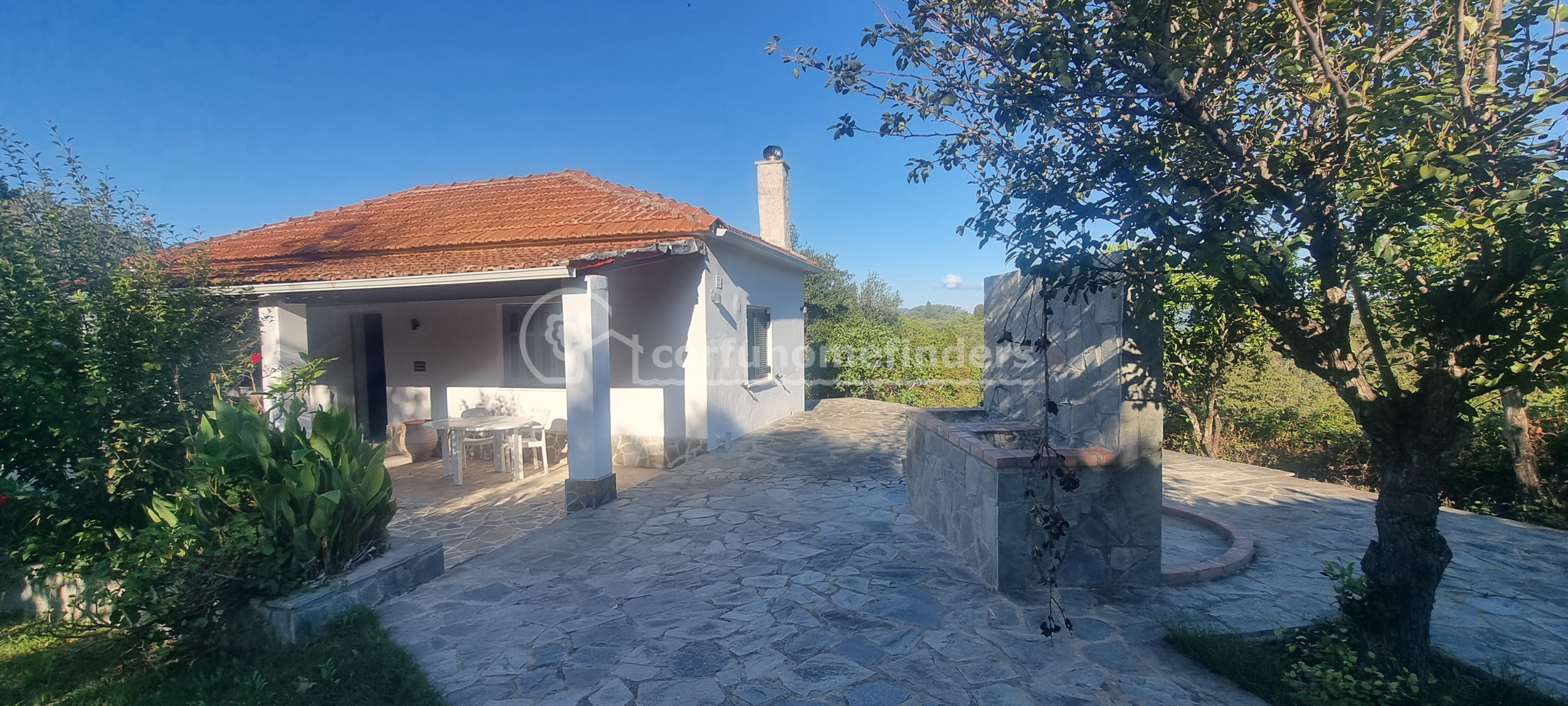 The house stands in its own fenced and well-maintained garden, overlooking the countryside and a small sea view down to Boukari Bay. Along the front of the house is a large covered terrace perfect for chilling out.