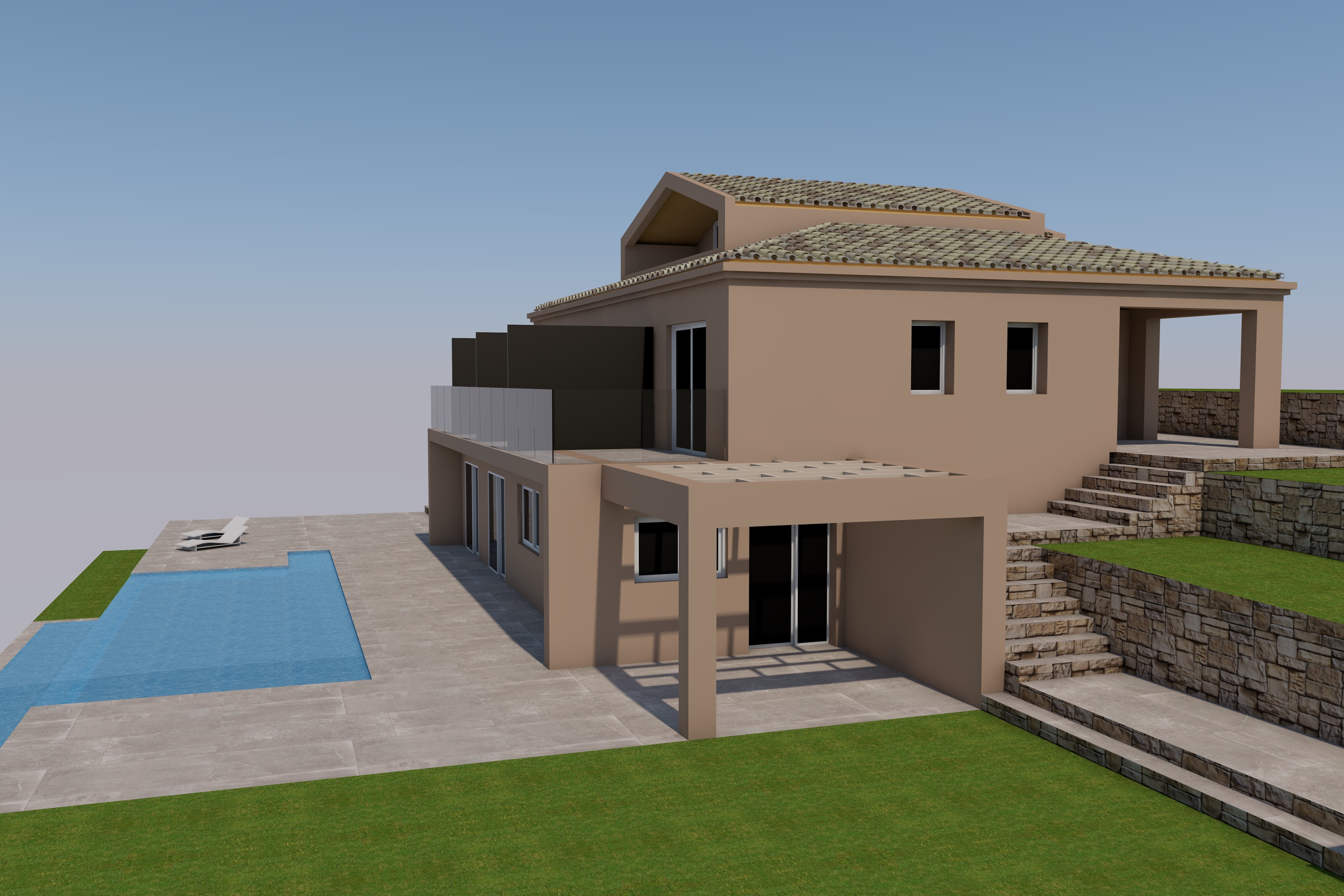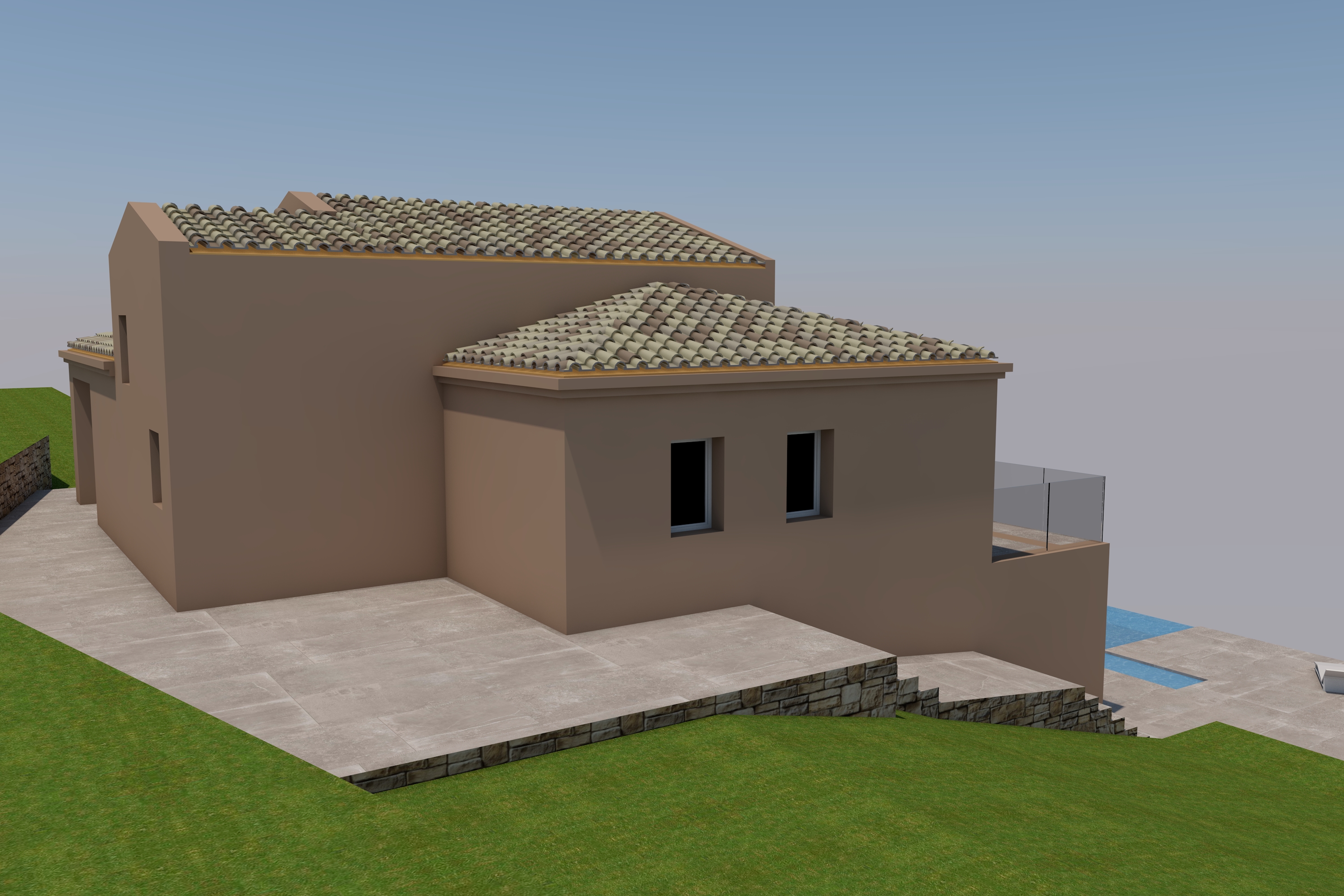 The designs currently approved are for a 280m2 house, consisting of 7 bedrooms/8 bathrooms, an open plan kitchen/dining/living room area and a swimming pool.