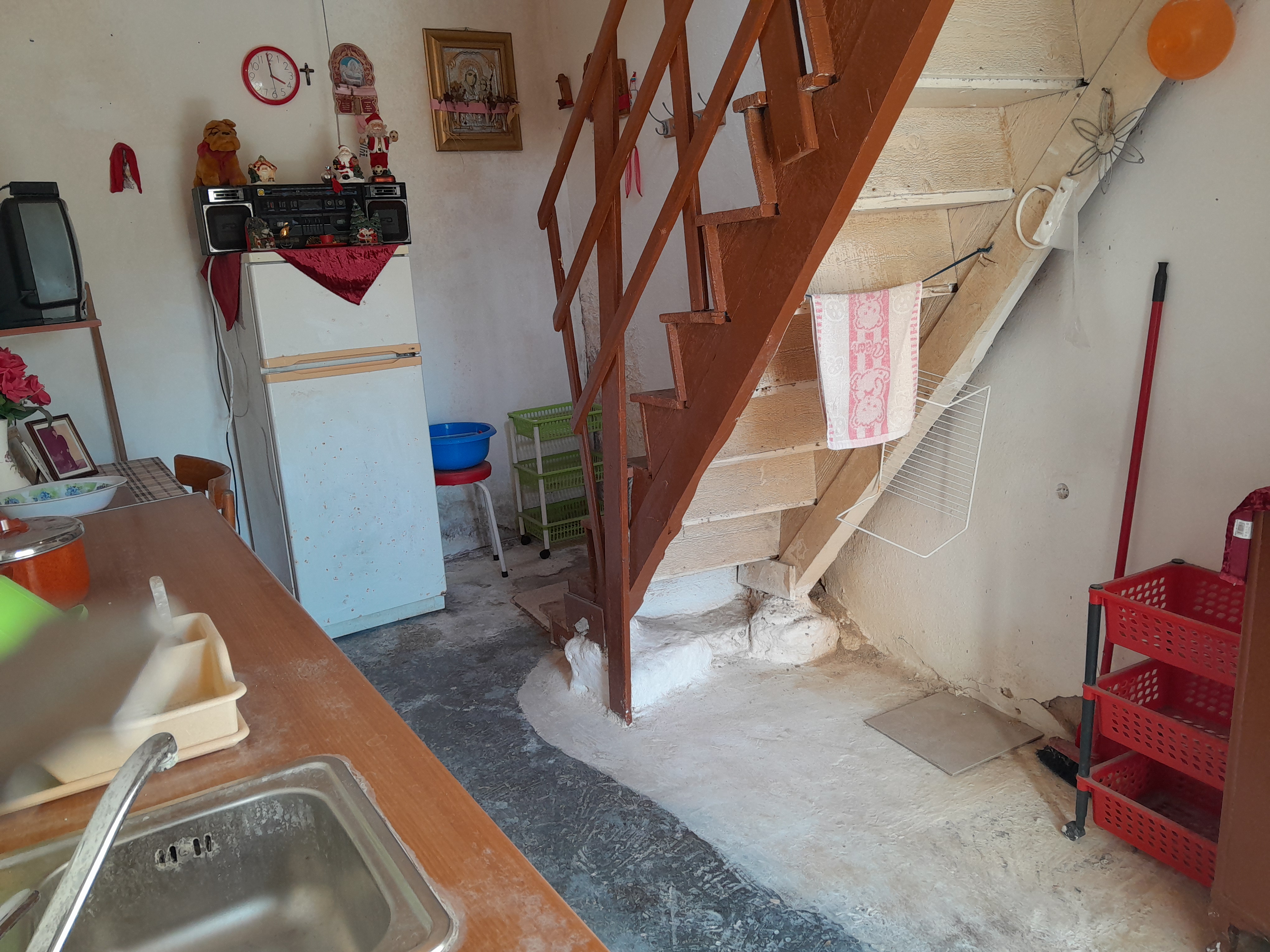 Upon entering, you will find the kitchen and a staircase that leads to the first floor. To the left of the kitchen is the living room.