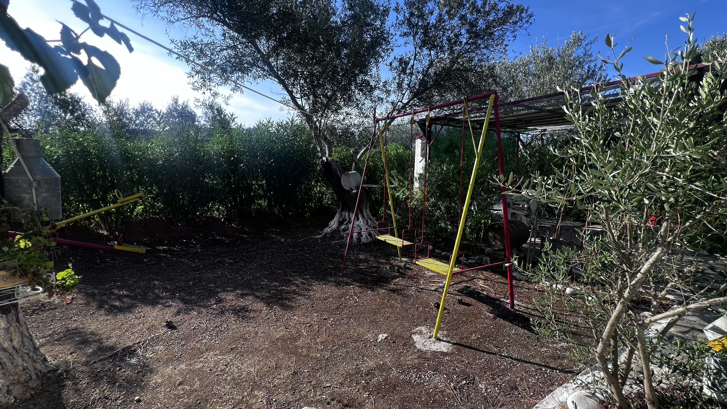 This property is an amazing holiday home surrounded by a large olive grove and fully designed to accommodate a family with various outdoor spaces, such as a kids playground, a dining area with BBQ and a wood oven and the best spot, a little tree house with calming views over the green hills and olive groves.