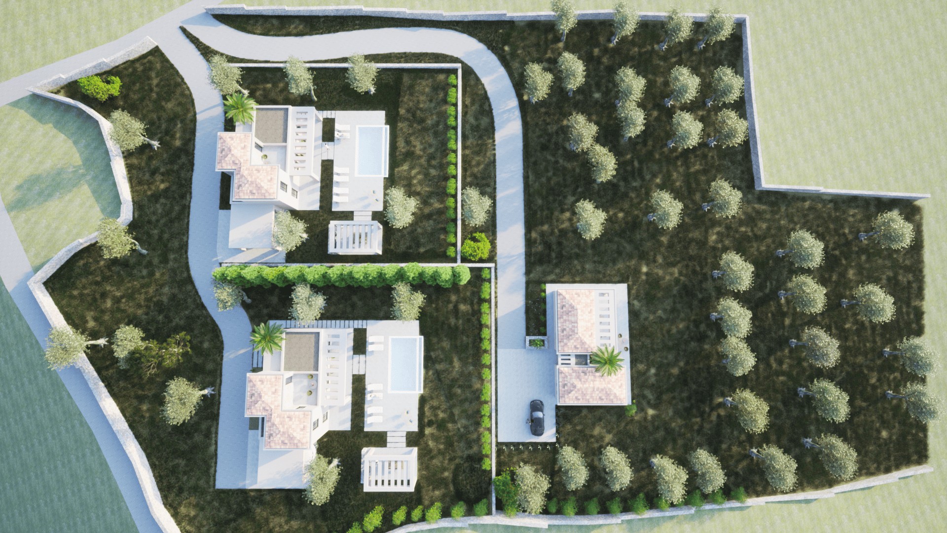 It measures 7.743 m2 and comes with a pre-approved building permit for the construction of three houses and two swimming pools.