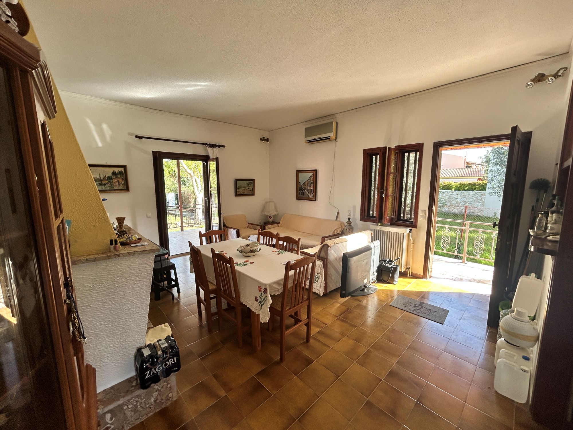 Set in a good size plot of just over 1000m2, this three bedroom property would make a great family home or holiday house. Gates lead into the property grounds where there is a large, flat garden at the front with a paved area for parking.