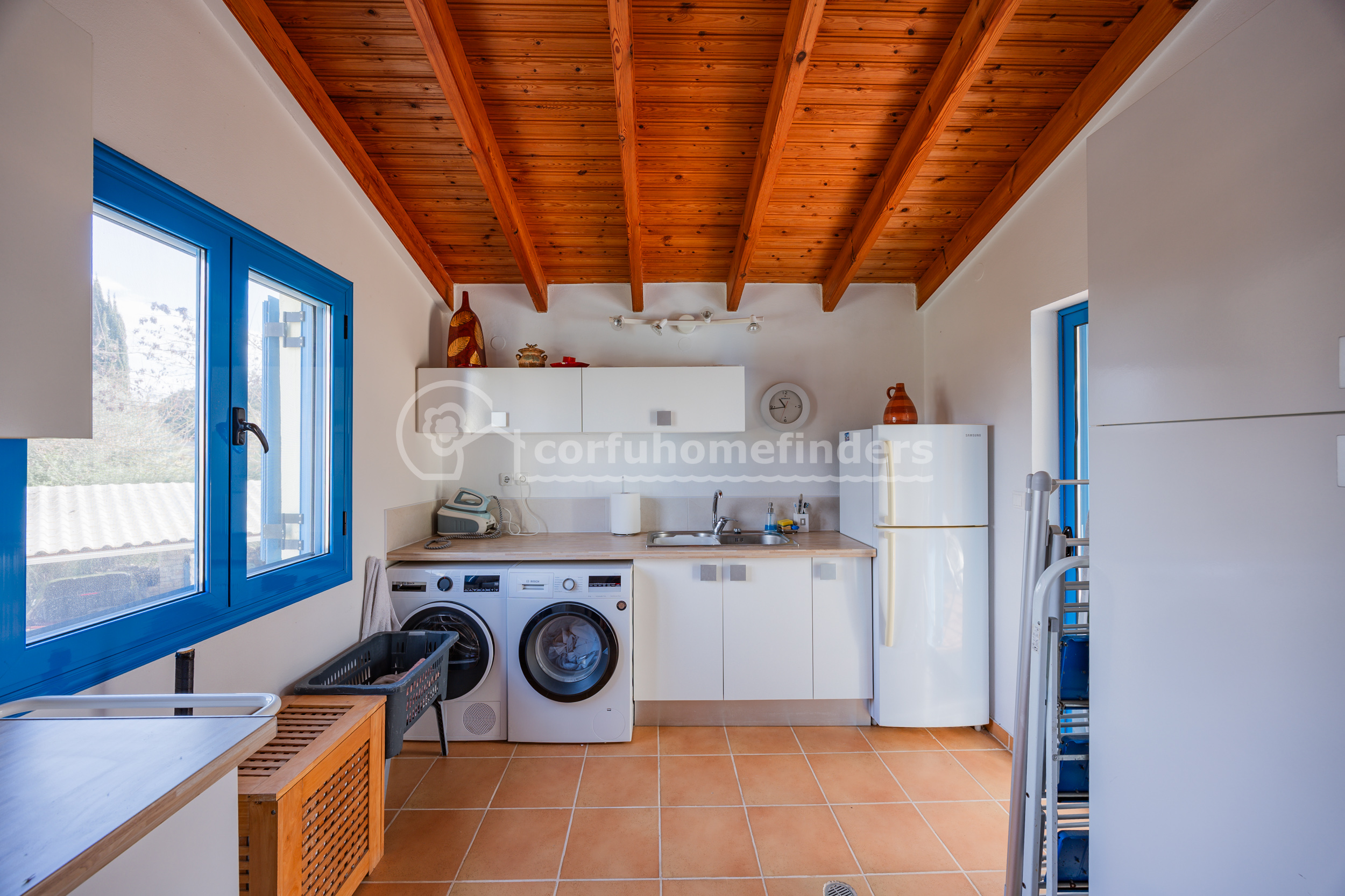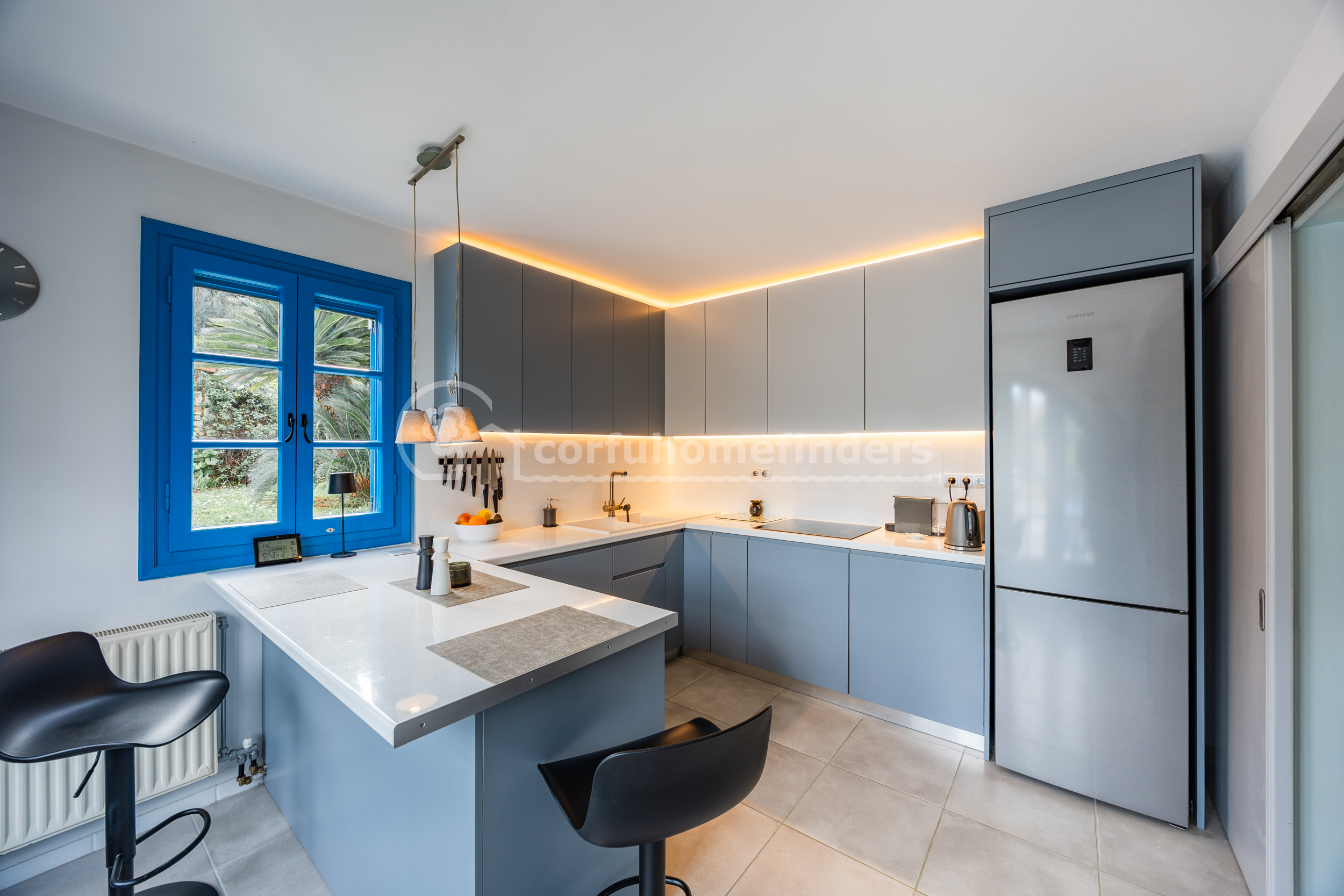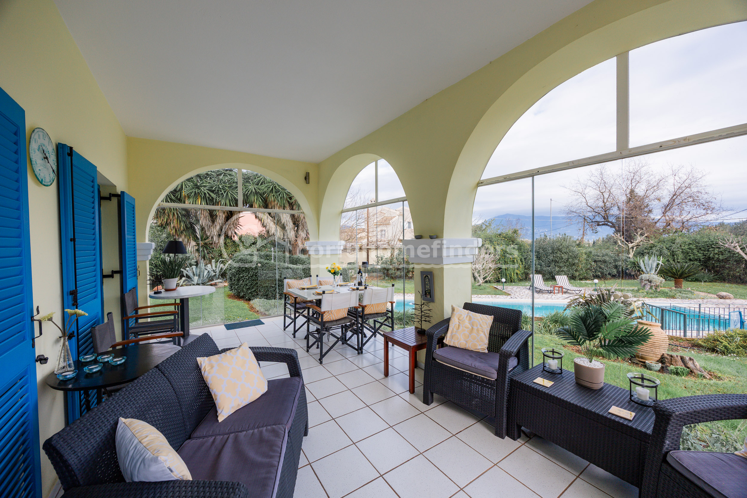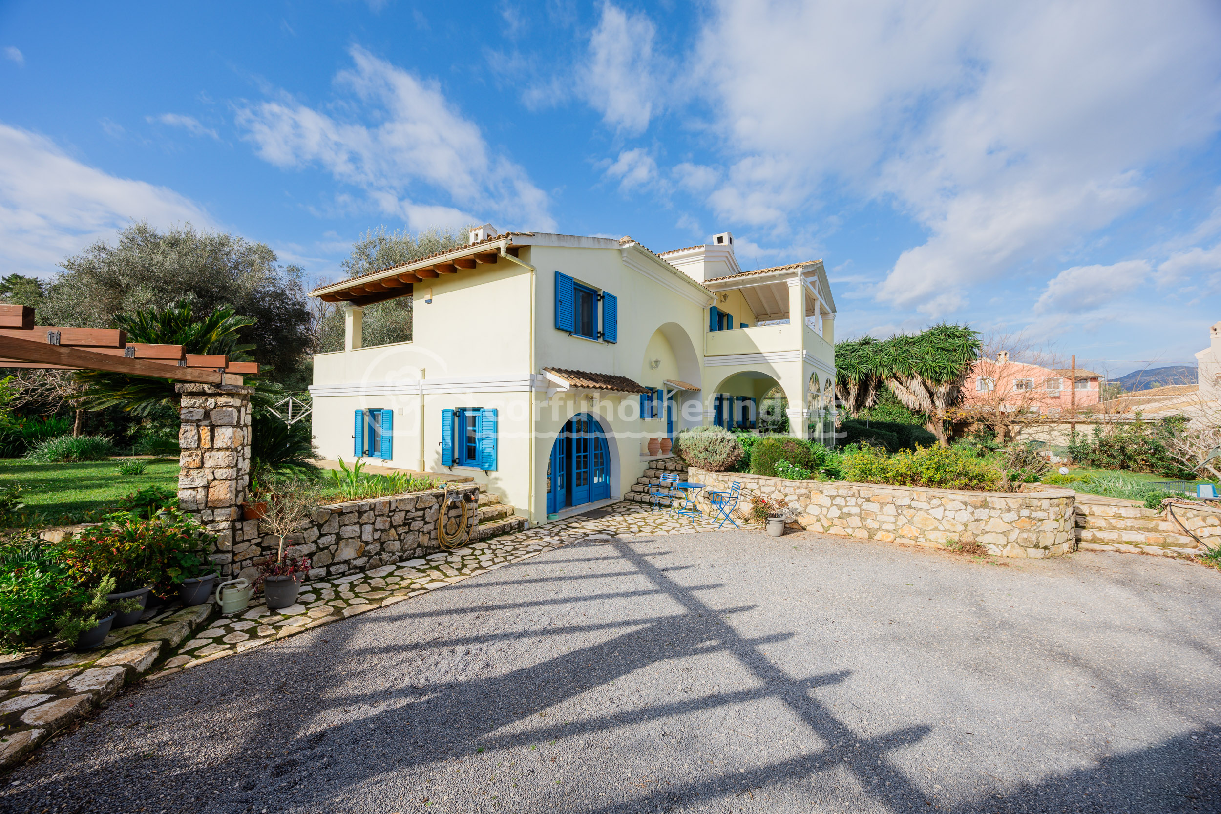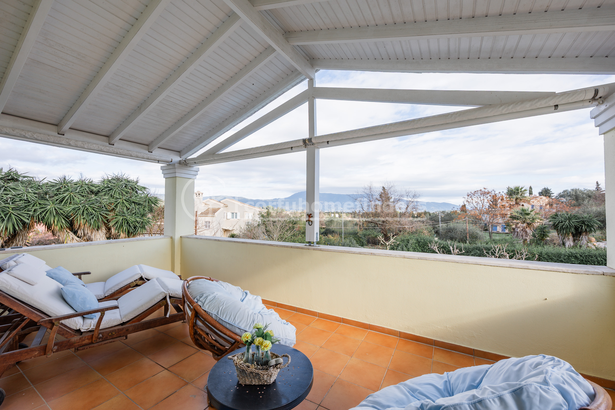 Situated in the sought-after residential area above Gouvia, this attractive three bedroom villa enjoys far-reaching country views towards mount Pantokrator.