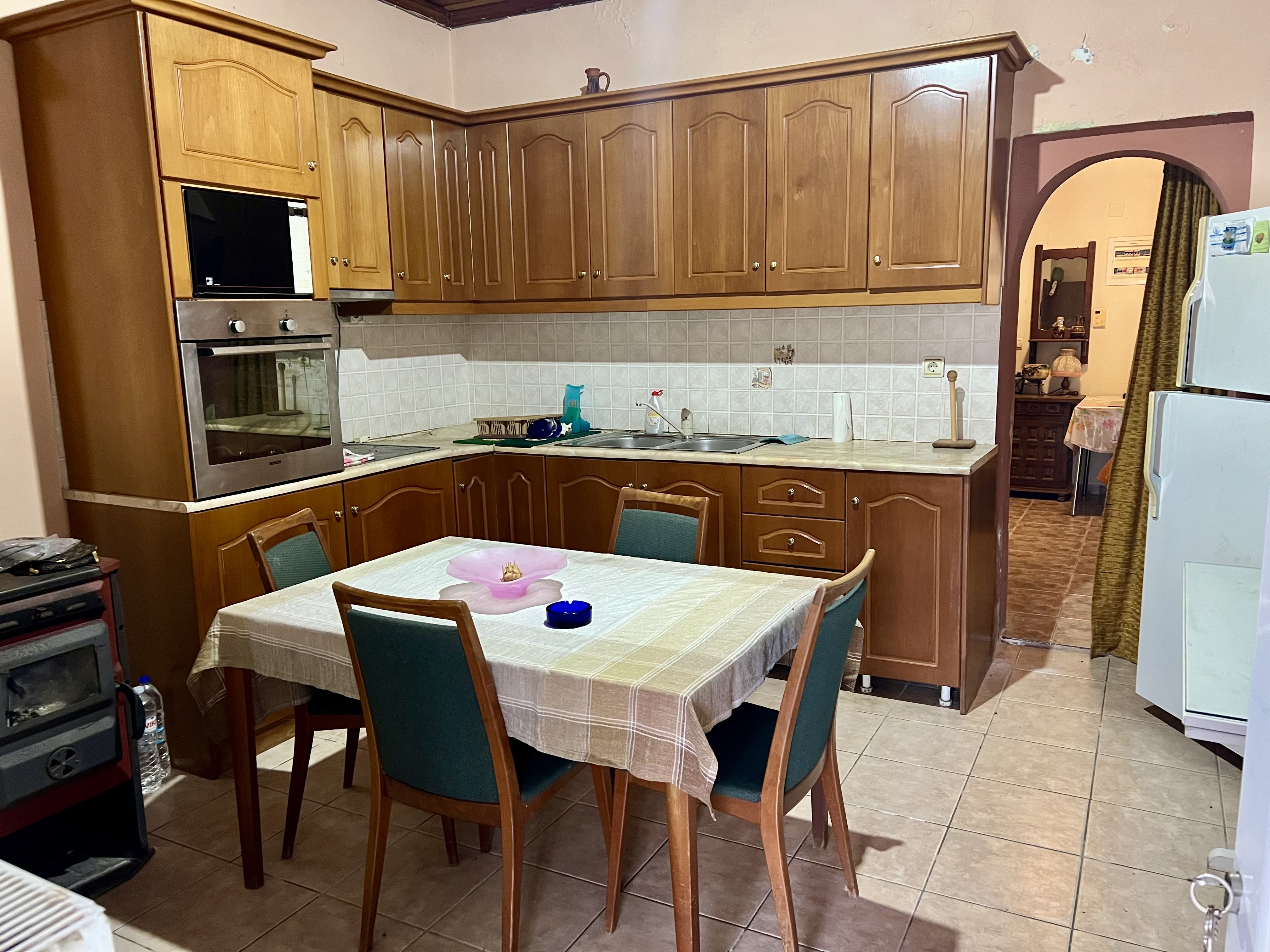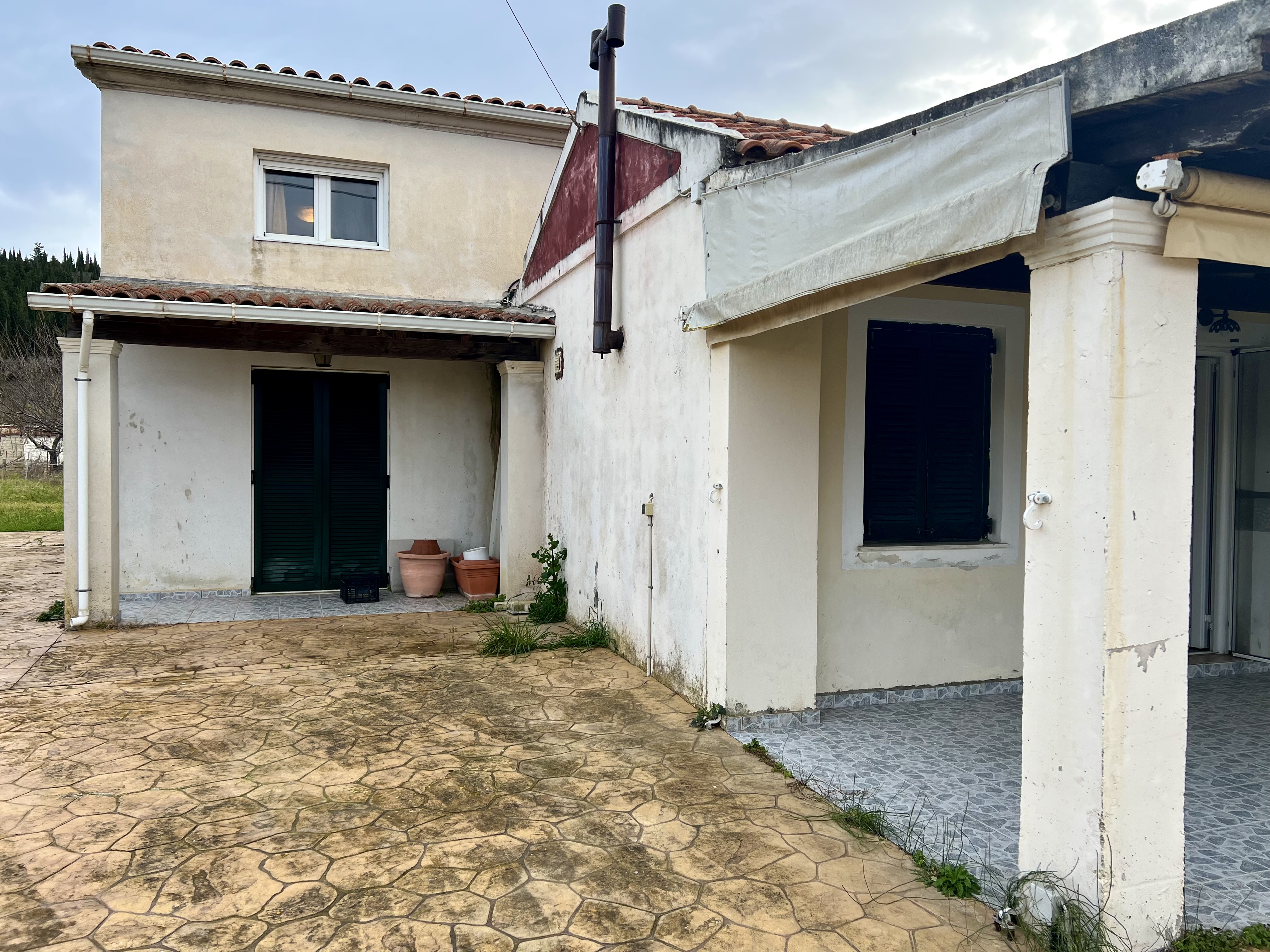 Located in the village of Peroulades near Sidari, this detached two-storey house offers comfortable living space with three bedrooms.